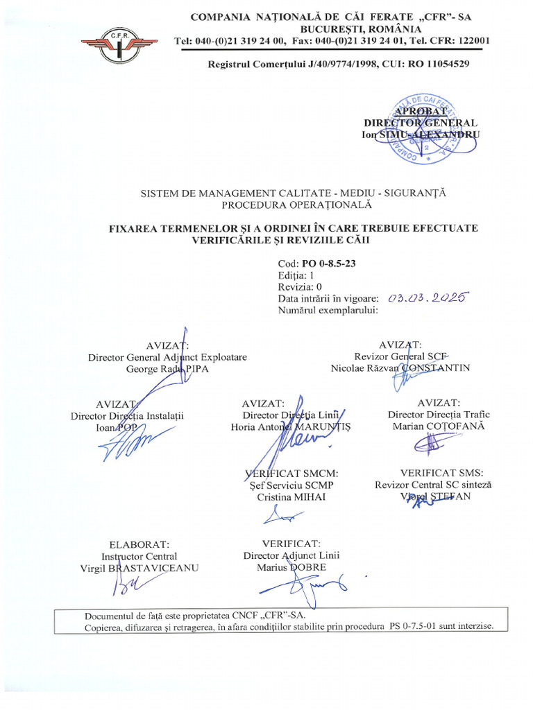 Documentul de fatd este proprietatea CNC .CFR”-SA.