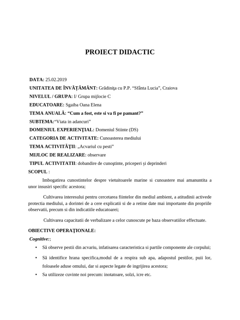 PROIECT DIDACTIC