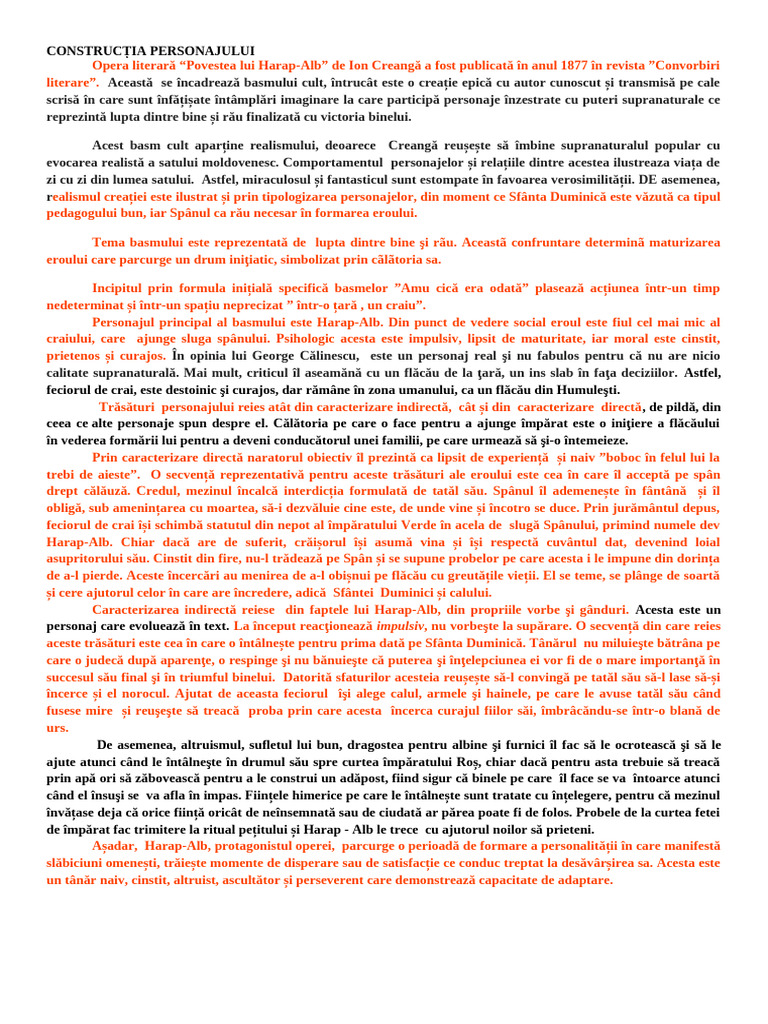 Așadar, Harap-Alb, protagonistul operei, parcurge o perioadă de formare a personalității în care manifestă