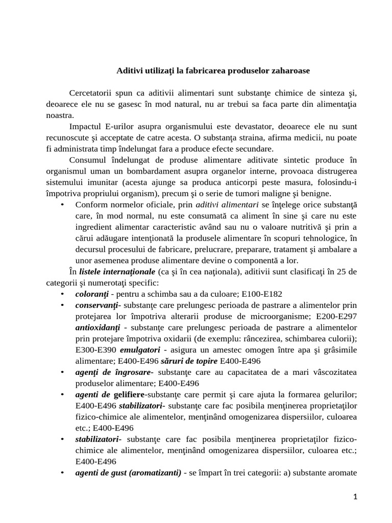 Aditivi utilizaţi la fabricarea produselor zaharoase