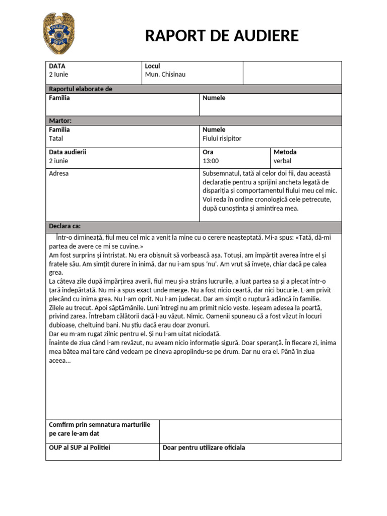 RAPORT DE AUDIERE