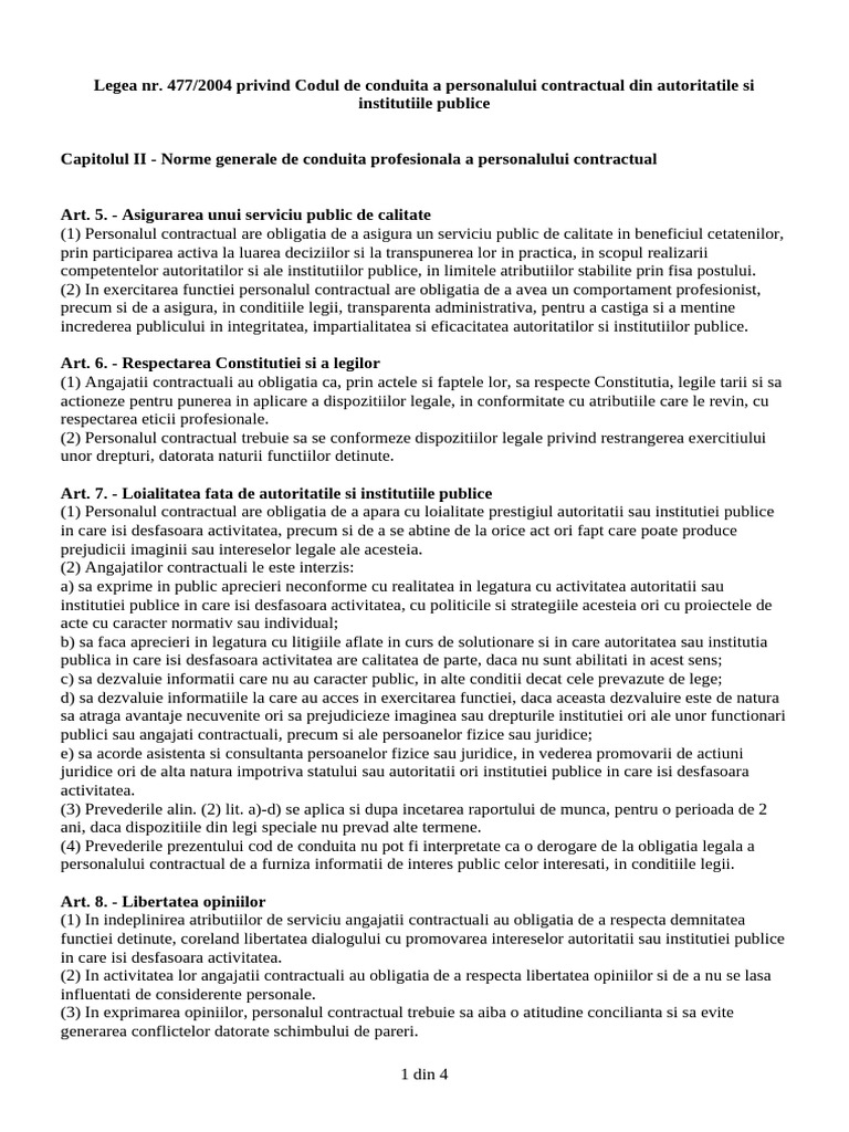 477/2004 privind Codul de conduita a personalului contractual din autoritatile si