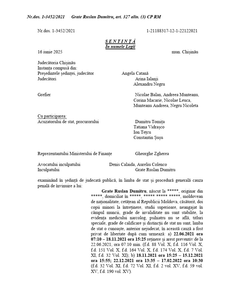 [Link]. 1-3452/2021 Grate Ruslan Dumitru, art. 327 alin. (3) CP RM