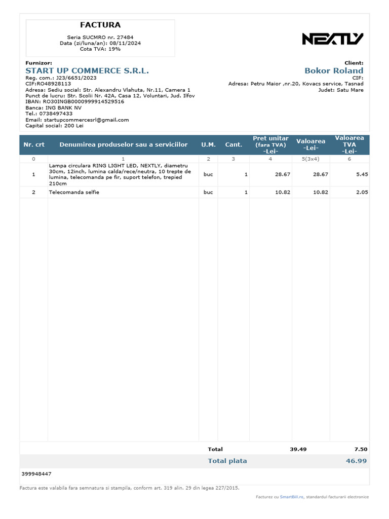 Adresa: Sediu social: Str. Alexandru Vlahuta, Nr.11, Camera 1 Judet: Satu Mare
