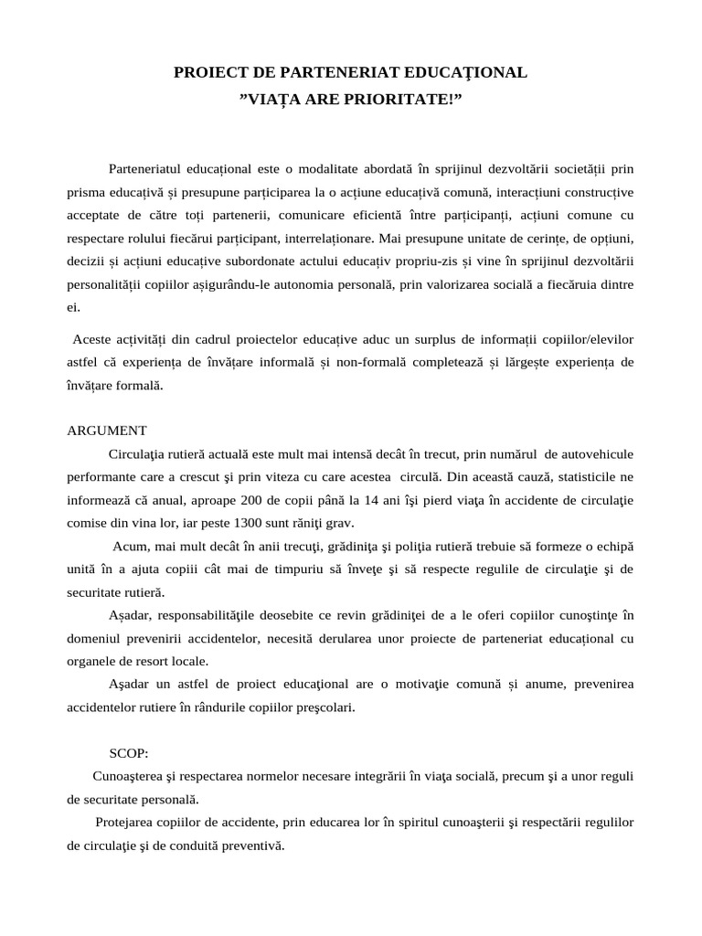 PROIECT DE PARTENERIAT EDUCAŢIONAL