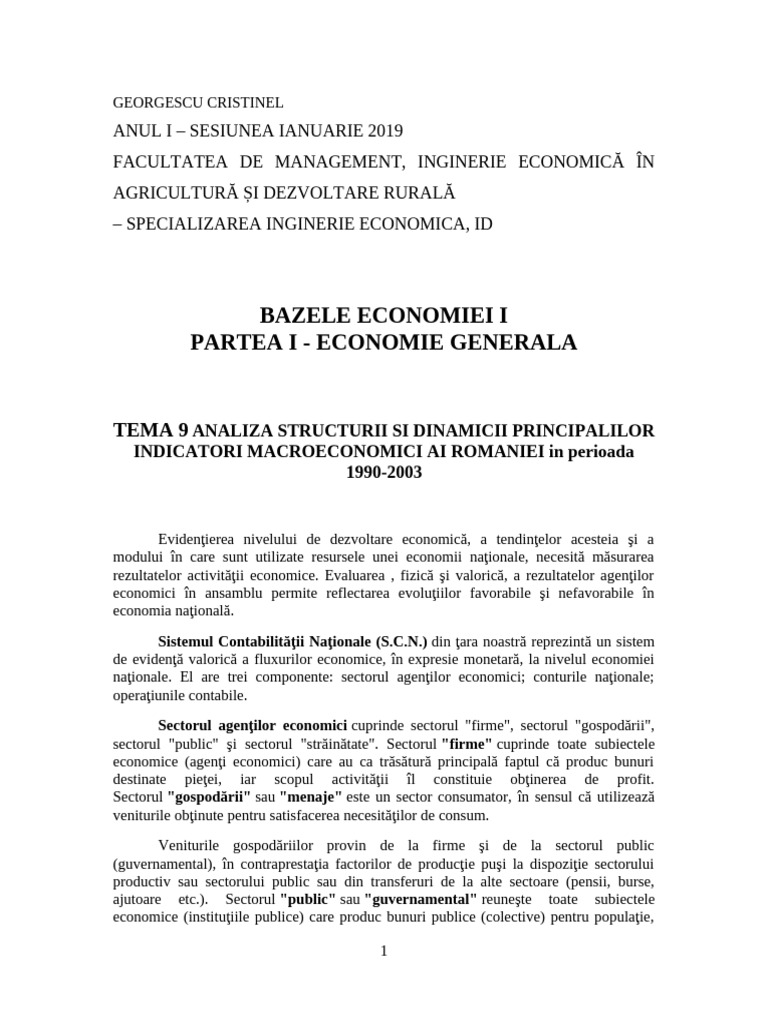 INDICATORI MACROECONOMICI AI ROMANIEI in perioada