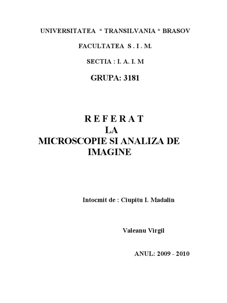 REFERAT LA MICROSCOPIE SI ANALIZA DE IMAGINE
