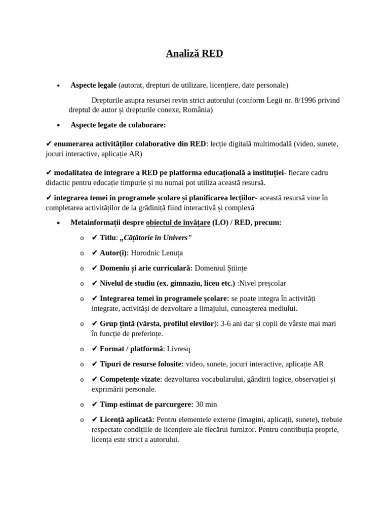 ✔ enumerarea activităților colaborative din RED: lecție digitală multimodală (video, sunete,