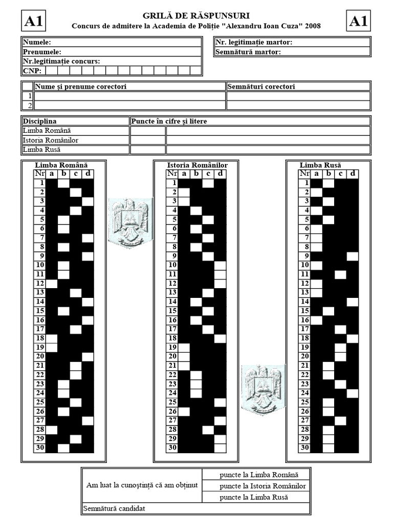 A1 Concurs de admitere la Academia de Poliţie "Alexandru Ioan Cuza" 2008 A1
