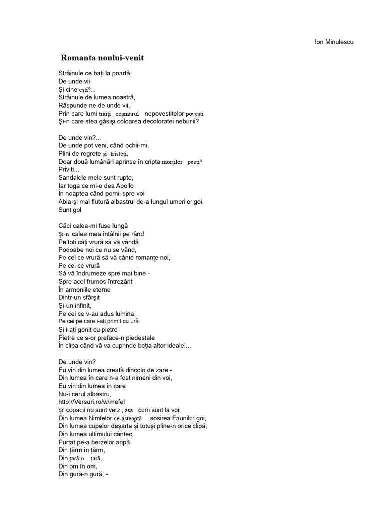 exemplu de poezie a poeziei din literatura română. Valoarea vine nu din «sinceritatea» limbajului, ci din disproporţia