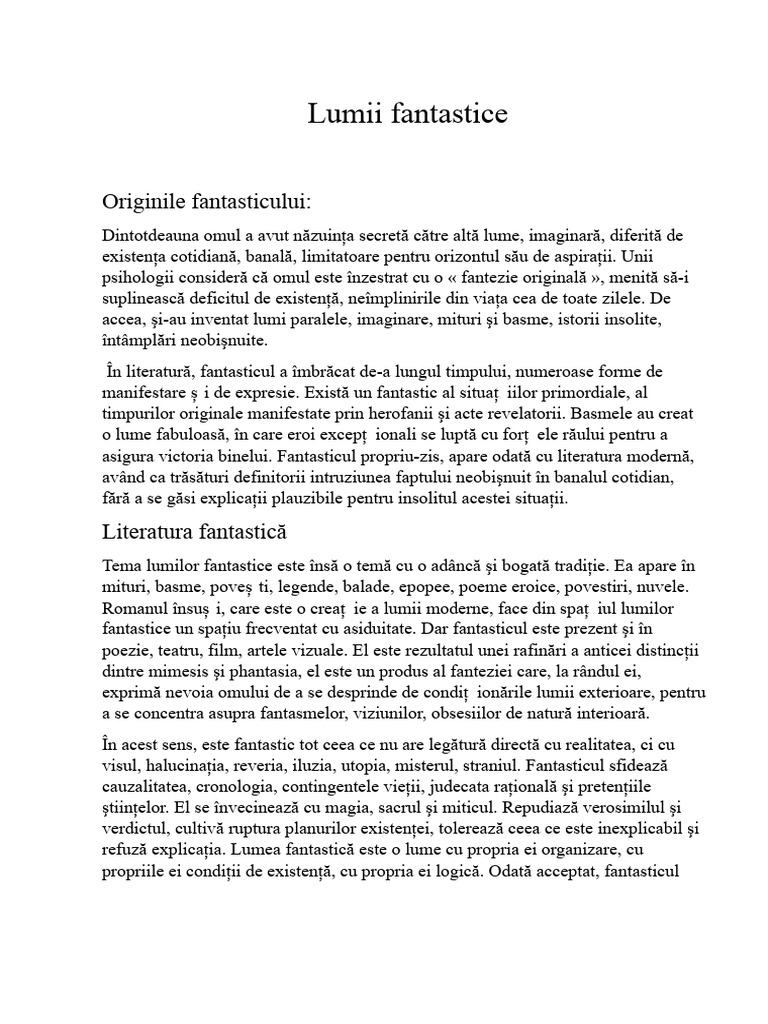 Printre cele mai importante trăsături ale unei naraț iuni fantastice: