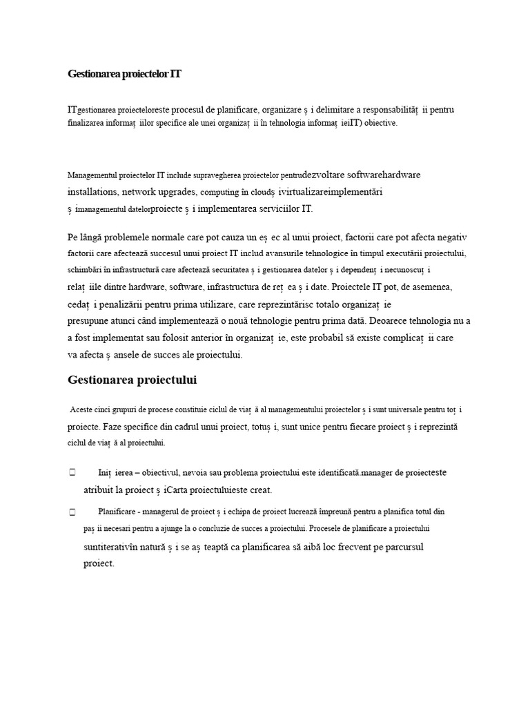 relaț iile dintre hardware, software, infrastructura de reț ea ș i date. Proiectele IT pot, de asemenea,