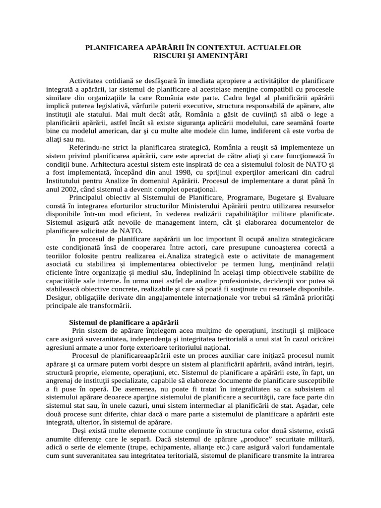 structură proprie, elemente, operaţiuni, etc. Sistemul de planificare a apărării este, în fapt, un