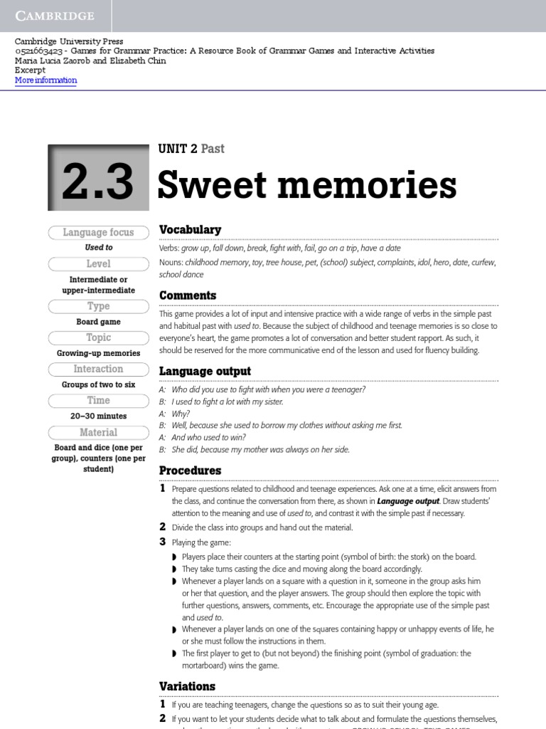Growing-up memories should be reserved for the more communicative end of the lesson and used for fluency building.