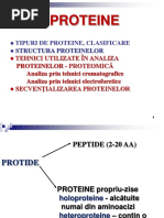 Mitocondriile ca organite citoplasmatice concura la formarea de RL astfel ca in cursul respiratiei celulare mitocondriale de formeaza O2 C)Implicatii patogene si protectia antioxidativa Ras liberi sunt implicate in declansarea unor boli. Intre acestea se pot mentiona inflamatii acute, unele boli cardiovasculare, insugicienta hepatica si respiratory Rol benefic al unor principii alimentare si anume de natura vitaminica(a,c,e),minerala(alimente bogate in Cu ,Zn,Se) si lipide In practica med stresul oxidative a fost combatut prin utilizarea unor chimioterapice: Fenotiazinele barbituricele,alopurinol, vit a,c,e(sub forma de medicamente) 37. Proteine de interes biologic. Exista 40.000 tipuri de proteine 1.Proteine solubile sau globulare se divid: Blobuline, care precipita pana la 50% saturare cu sulfat de amoniu Albumine, care precipita la peste 50% saturare in sulfat de amoniu. Se mai introduce si hostone si protamine. 2.Proteine insolubile , fibrilare sunt: vegetale, bacteriene si animale; migrarea lor electroforetica si comportare la ultracentrifugare. Albuminele > sunt proteine globulare , usor solubile in apa solutii saline , acizi si baze diluate. > nu contin glucocol > sunt usor cristalizabile > prin incalzire la 60 70 C , coaguleaza > indeplinesc urmatoarele finctii: Reglarea presiunii osmotice a sangelui Tamponarea pH-ului sanguin Transportul unor substante Rezerva de proteine Globulinele > sunt proteine globulare , insolubile sau greu solubile in apa, solubiile in solutii saline si baze diluate > au masa moleculara mai mari decat albuminele, si sunt mai greu cristalizate decat acestea > cele mai raspandite in org animal sunt: - serumglobulina si fibrinogenul : in plasma sanguina - lactoglobulina in lapte - ovoglobulina in oua - miozina proteina contractila din muschi Protaminele > cele mai simple proteine > prezinta un accentuat character basic: 80% > nu coaguleaza > nu sunt hidrolizate in pepsina > se gasesc numai in organism. anim. > sunt toxive ptr anim. Histone > sunt proteine cu caracter bazic > coaguleaza la caldura > sunt hidrolizate de pepsina > se gasesc libere in leucocite si in sperma sub forma de nucleoproteide > sunt implicate in reglarea activitatii genelor Prolamine > sunt proteine de natura vegetala > sunt importante ptr alimentatia omului > insolubile in apa in sol. saline > sunt raspandite numai in graminee > au un continut mare de acid glutamic, prolina , glicocol, lizina, triptofanul Gluteine > sunt proteine de natura vegetala > sunt importante ptr alimentatia omului > insolubile in apa, alcool, sol. saline