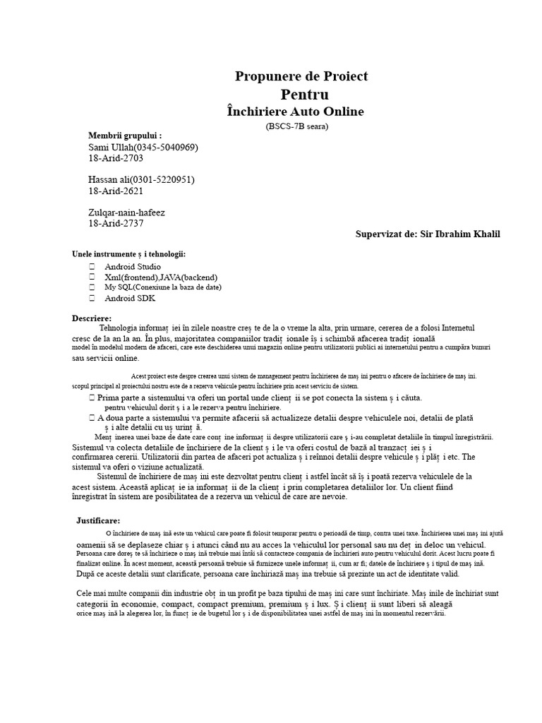 Acest proiect este despre crearea unui sistem de management pentru închirierea de maș ini pentru o afacere de închiriere de maș ini.