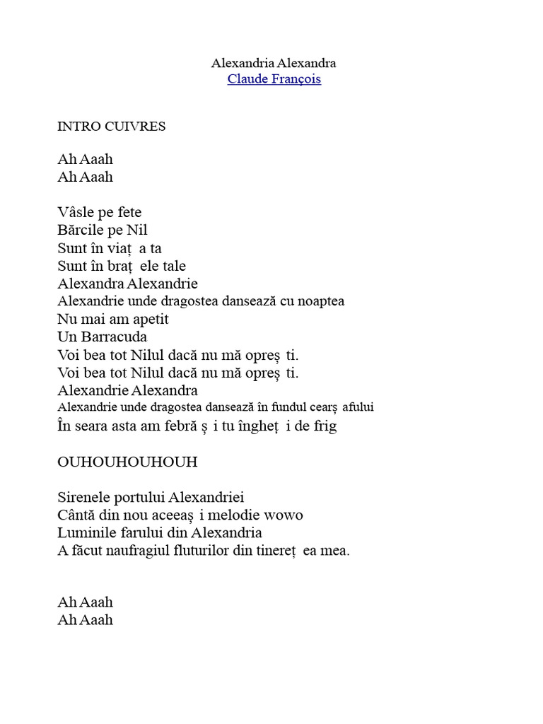 ALEXANDRIE ALEXANDRA Versuri