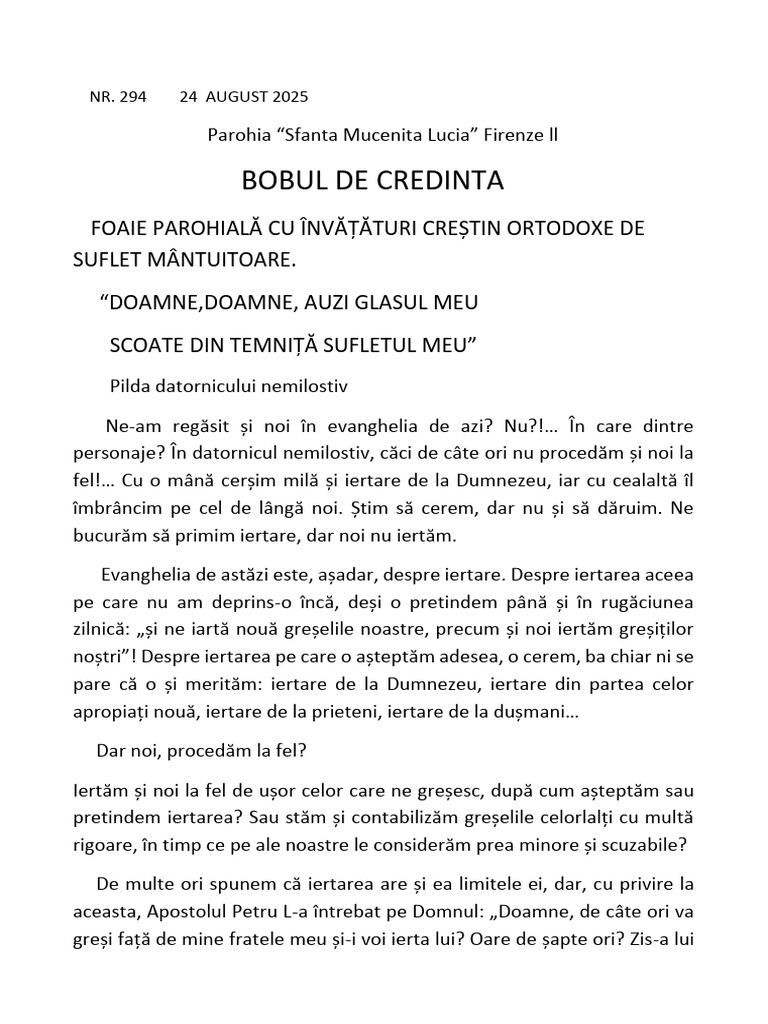 FOAIE PAROHIALĂ CU ÎNVĂȚĂTURI CREȘTIN ORTODOXE DE