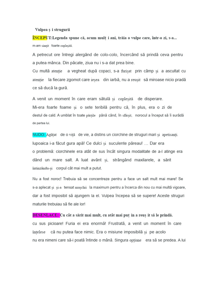 dar a fost imposibil să ajungem la el. Vulpea începea să se supere! Aceste struguri