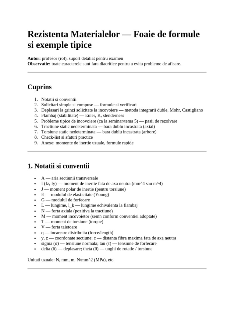 Unitati uzuale: N, mm, m, N/mm^2 (MPa), etc.
