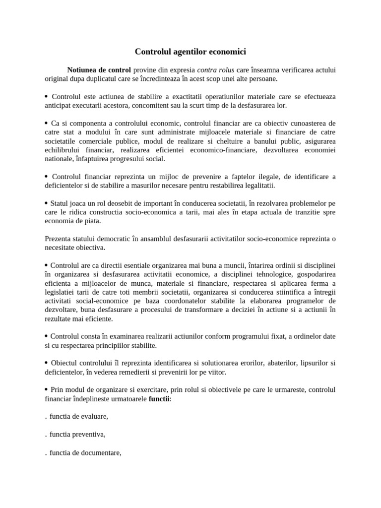 Controlul este actiunea de stabilire a exactitatii operatiunilor materiale care se efectueaza