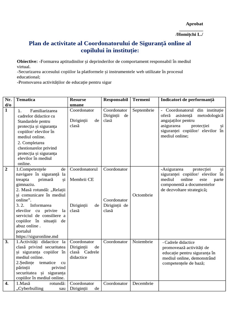 1 1. Familiarizarea Coordonator Coordonator Septembrie - Coordonatorul din instituție