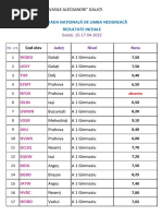 Nr crt COD ELEV Unitatea școlară de proveniență Clasa Punctaj
