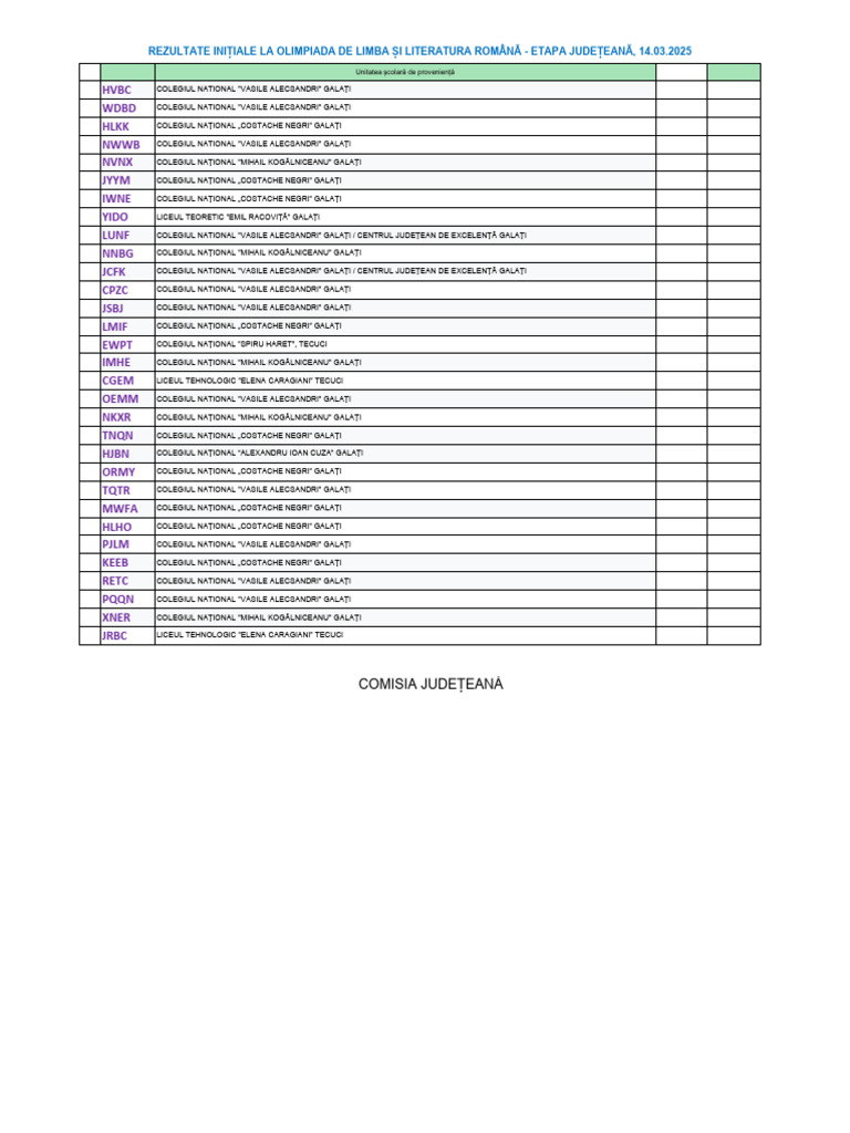 REZULTATE INIȚIALE LA OLIMPIADA DE LIMBA ȘI LITERATURA ROMÂNĂ - ETAPA JUDEȚEANĂ, 14.03.