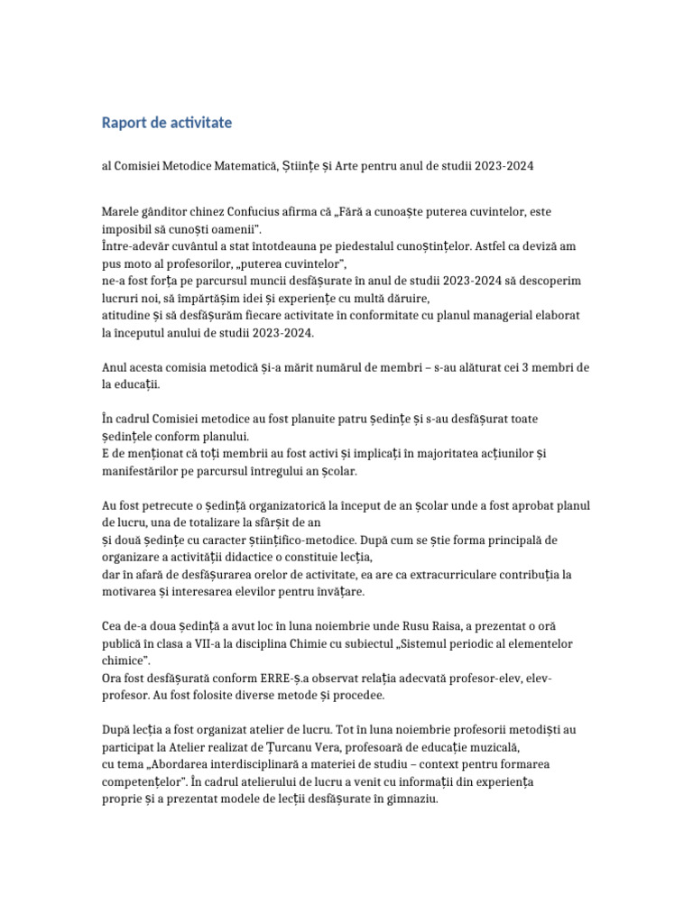 Raport de activitate