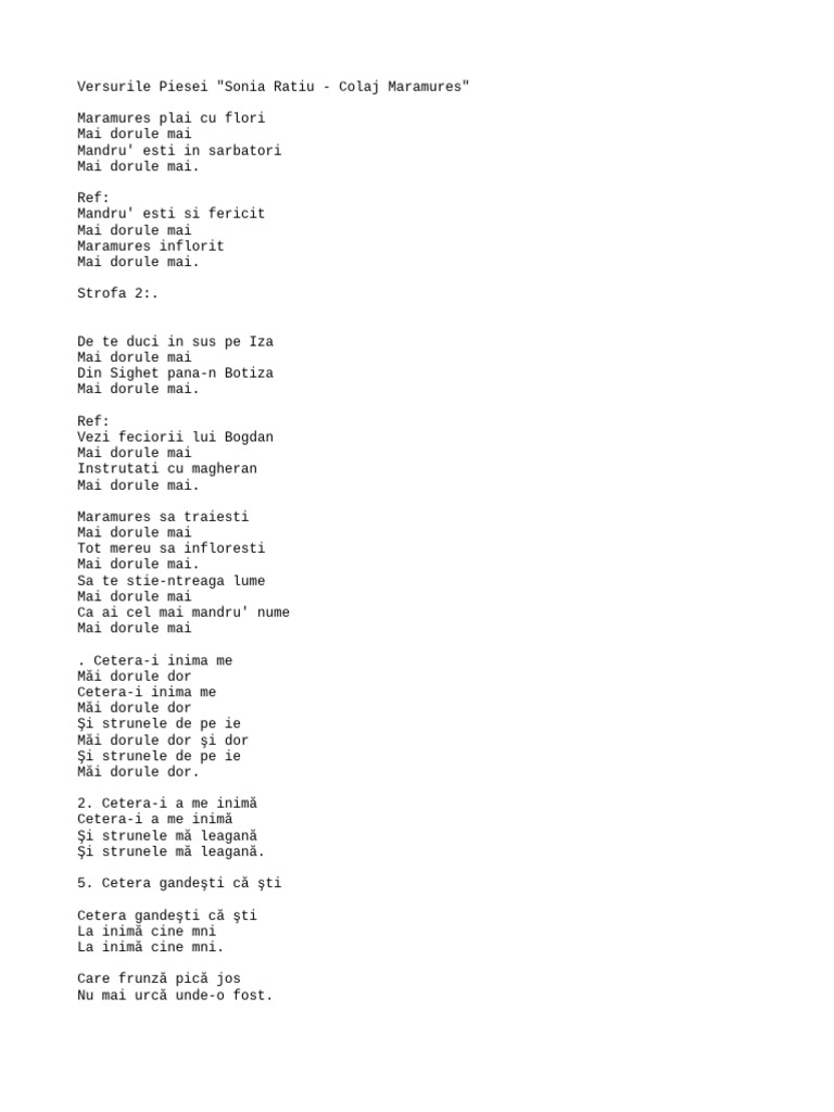 Versurile Piesei "Sonia Ratiu - Colaj Maramures"