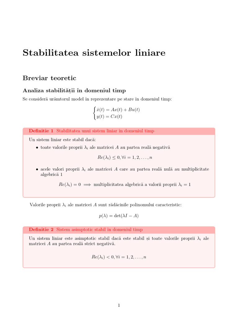 Un sistem liniar este asimptotic stabil dacă este stabil s, i toate valorile proprii λi ale