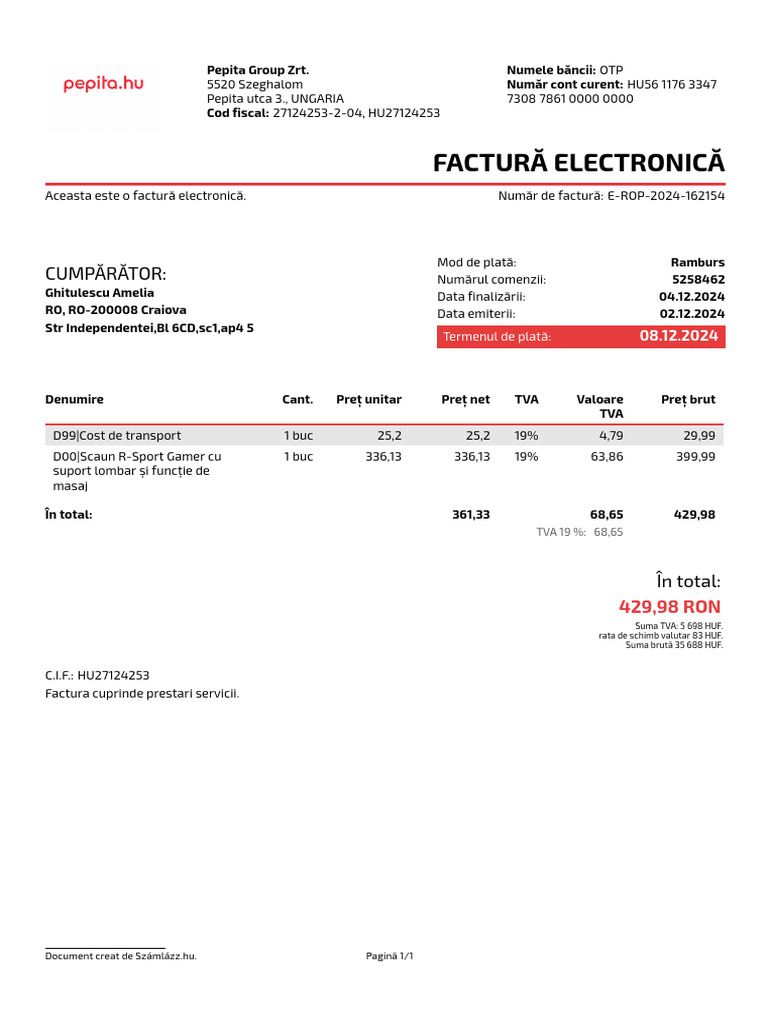 Document creat de Számlá[Link]. Pagină 1/1