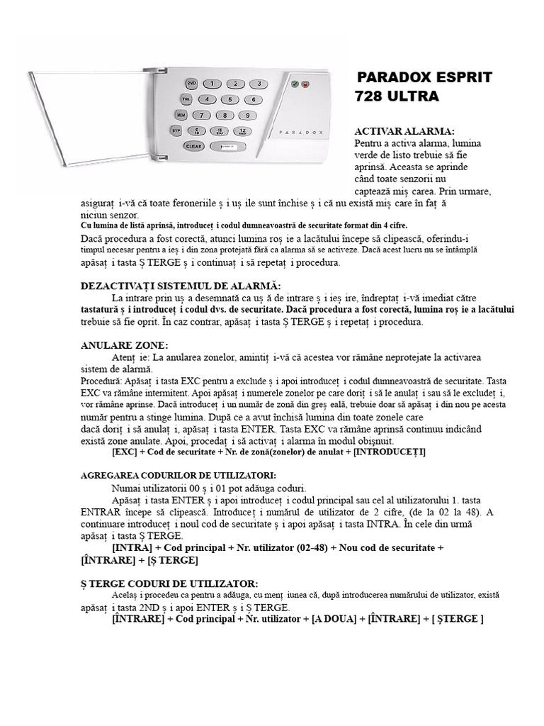 Procedură: Apăsaț i tasta EXC pentru a exclude ș i apoi introduceț i codul dumneavoastră de securitate. Tasta