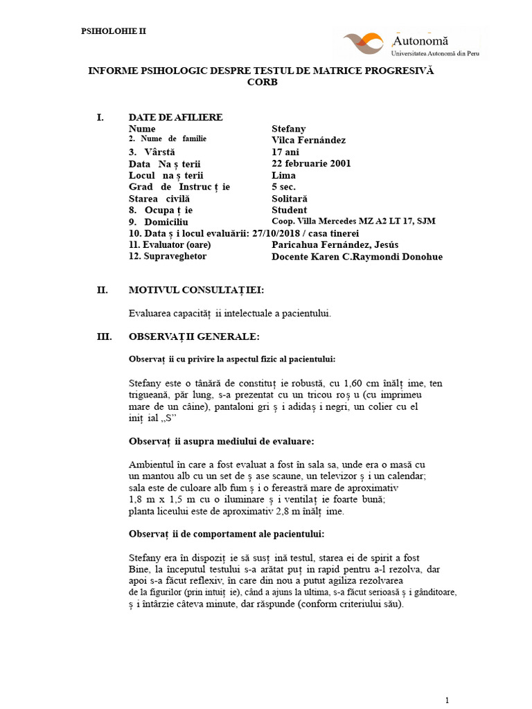 Raport Psihologic Pentru Raven