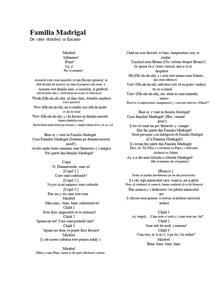 Atâț ia copii în casa noastră, aș a că să dăm volumul mai încet Deci, doar pentru a revizui Familia Madrigal