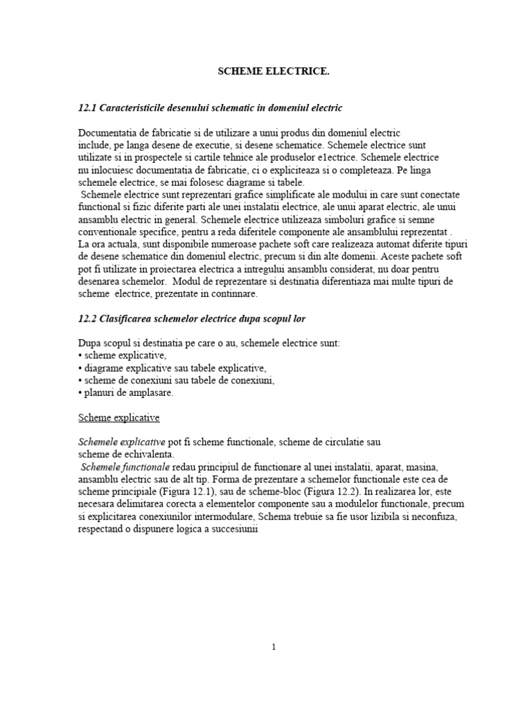 12.2 Clasificarea schemelor electrice dupa scopul lor