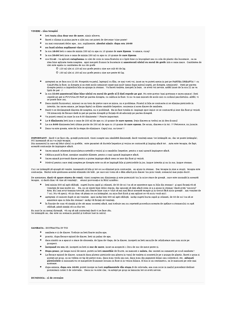 faceti inca o clisma in prima parte a zilei, cei care puteti, sa mai curatati pietrele ajunse pana in colon