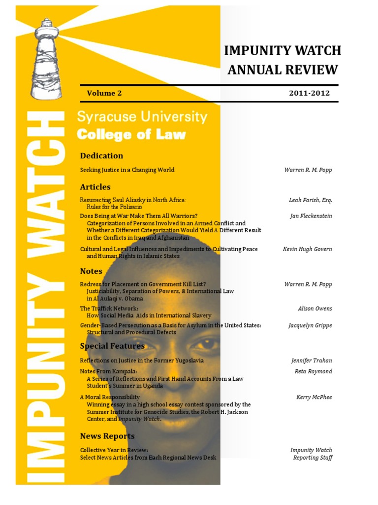 Syracuse University College of Law Impunity Watch Editorial Staff 2011 2012