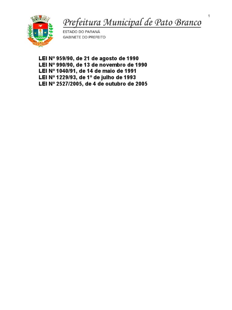 LEI N 959/90, de 21 de agosto de 1990 LEI N 990/90, de 13 de novembro de 1990 LEI N 1040/91, de 14 de maio de 1991 LEI N 1229/93, de 1 de julho de 1993 LEI N 2527/2005, de 4 de outubro de 2005