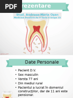 IGIENIZAREA N PROTEZAREA AMOVIBIL IGIENIZAREA PROTEZELOR: - cu periu i past de dini - imersie n soluii antiseptice ([Link] cu peroxid alcalin) IGIENIZAREA ESUTURILOR MOI: - repaus tisular (minim 4 ore/zi) - curarea esuturilor moi cu perii de plastic + masaj - masajul crestelor i bolii cu indexul sau policele pentru leziunile subprotetice - repaus tisular pn la vindecare (aprox. 10 zile) CONSIDERATII ENDODONTICE LA PACIENTUL VARSTNIC Este un lucru universal acceptat ca in viitorul stomatologiei va creste numarul pacientilor in varsta cu handicapuri si boli oro-dentare care vor necesita asistenta stomatologica. In prezent in SUA sunt peste 30 milioane de oameni peste 65 de ani. Se asteapta ca acest numar sa depaseasca 50 milioane in urmatorii 30 de ani. Intotdeauna au existat persoane de 70 80 de ani sau chiar mai in varsta insa acum este de asteptat ca durata medie de viata sa creasca. Mai mult, in viitor acesti varstnici vor avea mai multi dinti naturali pe arcada decat pacientii din zilele noastre. Acest progres va creste cererea si nevoia unui tratament dentar. Stomatologii vor fi afectati semnificativ de modificarile ce vor aparea in tratamentul pacientilor varstnici. Aceste diferente vor deveni evidente de la primul contact cu pacientul. Tratamentul endodontic, fie ca este realizat de medicul specialist sau de un stomatolog general, va fi afectat in mare masura de evolutia ce se prevede la varstnici. In general, aproximativ 85% din tratamentele pe canal sunt realizare de catre practicianul generalist. In viitor acest proces se va reduce datorita procedurilor din ce in ce mai reduse realizate de medici specialisti. Modificarile endodontice ale pacientului varstnic sun discutate pentru ca practicienii sa poata fi capabili sa diagnosticheze si sa trateze corect probleme endodontice la acesti pacienti si sa le asigure acestora o ingrijire de calitate. Inainte ca procedurile de tratament endodontic sa fie discutate este necesara intelegerea modificarilor care au loc la nivel dentinar si pulpar la pacientii varstnici care pot afecta direct tratamentul endodontic.