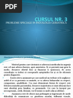 * Numr mare de tratamente odontale, parodontale, protetice, chirurgicale * Numr sporit de edine, efort crescut din partea medicului i laboratorului, consum mare de materiale * Pregtirea de cadre specializate n ngrijirea pacientului vrstnic Evaluarea pacientului vrstnic n vederea tratamentului - ine seama de : 1. Motivul principal de prezentare 2. Starea de igien oral 3. Nr. i starea de sntate a dinilor restani i parodoniului 4. Existena i calitatea tratamentelor anterioare 5. Atitudinea v. fa de tratamentele stomatologice anterioare 6. Particularitile psihologice ale pacientului(cooperant, necooperant,total dependent-lipsit de personalitate) 7. Starea general de sntate ( geroindex) 8. Alegerea de soluii simple n concordan cu geroindexul.