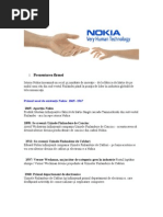 Istoria Brandului NOKIA ..pag. Imaginea actuala a brandului NOKIApag. Promisiunea brandului..pag. Pozitia brandului NOKIApag. Arhitectura de brandpag. Impactul celor 4 vectori ai tangibilitatii