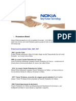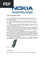 Istoria firmei Nokia ncepe n secolul al XIX-lea, cu o fabric de hrtie. Compania se dezvolt n mai multe domenii, dar n anii 90, conducerea firmei ia decizia de a se concentra asupra zonei de telecomunicaii. Istoria companiei este o poveste aproape neverosimil despre afaceri cu lemn, cauciuc, electrocasnice i, mai recent, telecomunicaii, derulate n Finlanda ncepnd din anii 60 ai secolului al XIX-lea. Astzi, despre Nokia se tie c este o poveste de succes n zona comunicaiilor mobile, ns n urm cu doar 15 ani, Nokia traversa una dintre cele mai negre perioade din existena sa. La nceputul anilor 90, managerii grupului finlandez Nokia se confruntau cu probleme care nu aveau vreo legtur cu zona comunicaiilor mobile. Dei avea o producie foarte diversificat - de la cizme de cauciuc pn la televizoare i hrtie igienic - compania traversa o perioad grea, vnzrile erau n scdere; concernul era prezent pe mai multe piee, ns fr s exceleze pe vreuna. n anul 1992, la crma companiei a fost instalat Jorma Ollila, care s-a dovedit a fi un adevrat manager vizionar i care a hotrt ca destinul companiei va fi legat de cel al telefoniei mobile. Ctre sfritul anilor 90, Nokia a devenit lider mondial n producia de telefoane mobile, depind n scurt timp companii ca Ericsson i Motorola. n timp ce corporaiile high-tech americane i canalizau toate energiile n zona tehnologiilor informaionale, cele europene i japoneze s-au axat, n principal, pe cele din zona telecomunicaiilor i a tehnologiilor fr fir. Din acest punct de vedere, Nokia a fost unul dintre reformatorii lumii. Chiar i americanii au recunoscut c, graie Nokia, viitorul comunicaiilor fr fir aparine Europei. Istoria companiei Nokia ncepe n anul 1865, cnd inginerul Frederic Idestam obine autorizaia pentru construirea, pe malul rului Nokia, a unei fabrici de prelucrare a masei lemnoase. Cererea n continu cretere a transformat, n scurt timp, ntreprinderea Nokia dintr-o micu fabric ntr-un megacombinat. ntreprinderea a atras fora de munc, astfel c n jurul fabricii se creeaz un adevarat ora, denumit Nokia. n primii ani de activitate, hrtia produs de Nokia a nceput s fie exportat n Rusia, Marea Britanie, Frana i chiar China. Ctre sfritul anilor 1860, cererea de hrtie a crescut mult peste oferta industriei finlandeze, iar de aceea Nokia a nceput s realizeze importuri masive de masa lemnoas din Suedia i Rusia. n februarie 1871, este creat Nokia Corporation (Nokia Aktiebolag), companie care, n scurt timp, a devenit juctor principal pe pieele din Danemarca, Germania, Rusia, Marea Britanie, Polonia i Frana.