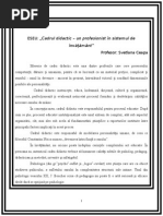 Chiar i n aceste conditii este evident ca nu se poate standardiza intreaga activitate a [Link] intai ptr c educaia este un fenomen complex vizeaz toate dimensiunile fiinei umane (fizic,intelectual, moral) i, si in al doilea rnd, pentru c elevii sunt foarte diferii unii fa de [Link] tie c activitatea didactic este marcat de numeroase situaii neprevzute, care nu sunt avuten vedere la elaborarea programelor de formare iniial i continu a educatorilor. Din acest motiv,educatorii, dincolo de pregtirea lor de baz i de experienta trebuie s aib i o mare capacitate de a seadapta la realitile vieii colare, fiind capabili s rezolve situaii-problem dintre cele mai [Link], rbdarea capacitatea de a comunica uor cu cei din jur, de a soluiona conflictele sunt caracteristicicu care te nati sau pe care le dobndeti printr-un efort personal considerabil, pe parcursul [Link] cteva direcii de aciune practic, necesare n realizarea chiar i parial a standardizriiactivitii educatorilor din invmnt:- Prin dezbateri academice, dar i colegiale, la care s participe i elevii, i s se descrie un set decompetente ale educatorilor din nvmnt, cuprinznd dou segmente: un trunchi comun, valabil pentrutoate categoriile de educatori i unele cerine speciale, n funcie de treapta de nvmnt, deci de grupade vrst cu care lucreaz educatorii.- Profilul de competen definit pe plan naional s stea la baza tuturor, programelor de formare a personalului didactic din Romnia.- Fisele postului, pe categorii de personal didactic i fiele de evaluare a personalului didactic saib la baz standarde" derivate din profilul de competenta proiectat, care s se bazeze exclusiv pecomportamente direct observabile sau msurabile.- Inspecia scolar s fie regndit din perspectiva standardelor naionale convenite.- Standardele pentru profesia didactic s fie revzute periodic, pentru a le adapta la dinamicadezvoltrii tiinifice, economice i sociale care determin, obiectivele, funciile i coninutul educaiei. FORMARE INITIALA SI CONTINUA, EVALUARE SI AUTOEVALUARE Formarea iniial a personalului didactic, indiferent de legislaia n vigoare, trebuie s cuprind:- O pregtire psihologic prin care s se creeze condiiile cunoaterii i autocunoaterii autentice,s se creeze nelegerea locului i rolului personalitii In lume;- O pregtire pedagogic n baza creia cel care dorete s imbrieze cariera didactic s tie nmsur s cunoasc, s ineleag i s aplice filozofia educaiei, s-i formeze un bagaj de cunotine, priceperi i deprinderi pentru a aplica teoriile curriculare, teoriile evalurii, teoriile intsruirii, metodologiadidactic pentru a-i forma o competen psihopedagogic;Perfectionarea prin definitivare i grade diclactice. Dup o vechime de doi ani i n baza unor inspecii de specialitate, fiecare dascl este obligat s susin examenul de definitivare n [Link] examen se poate susine de maximum trei ori ntr-o perioad de 2-5 ani vehime. Examenul dedefinitivat const n:- o prob scris la specialitate i metodica predrii ei;- o prob oral de specialitate i metodic;- o prob scris de [Link] patru ani de vechime de la definitivare orice dascl poate s susin examenul pentruobinerea gradului didactic II. Acest examen, la care are dreptul s se prezinte n baza concluziilor unor inspecii de specialitate, const din:- o prob scris la specialitate i la metodica predrii ei;- o prob oral la Pedagogie i elementele de psihologie (programa analitic mai complex dectcea pentru definitivat).Dup ali patru ani vechime dup gradul II, orice dascl poate participa la examenele pentruobinerea gradului didactic I. Pentru gradul I, dup trei ani vechime i n baza unor concluzii aleinspeciilor de specialitate, dasclul particip la un colocviu de admitere la gradul I. Acest colocviu constdintr-un interviu din: specialitate, metodic, psiho-pedagogie i mai ales din metodologia [Link] contiun a personalului didactic implic: 168 Formarea continu odat la cinci ani, aciune pe care fiecare dascl trebuie s-o urrneze pn la pensionare. Aceast activitate se realizeaz prin parcurgerea mai multor programe oferite mai ales prindepartamentele specializate ale [Link] informaional deosebit, ca urmare a progresului tiinific, tehnic, cultural, urmat deschimbri continue, chiar de mutaii n cadrul disciplinelor predate, n profesiuni, n activitile socialeutile, n condiiile economice, necesit o preocupare i o capacitate deosebit de a asigura o perfecionarecontinu a pregtirii profesionale, de specialitate i psihopedagogice, n primul rnd, dar i o perfecionaren planurile cultural, etic, juridic i cetenesc, deoarece toate domeniile vieii sociale sunt n dezvoltare,att sub aspect cantitativ, ct mai ales sub aspect [Link] profesional a profesorului este necesar, ca n toate profesiile, datorit potenialelor pierderi cognitive. Numai printr-o reactualizare i perfecionare sistematic i constant a pregtirii profesionale la un nivel nalt de performan, printr-o formare continu se poate evita ceea ce senumete plafonare profesional, rutin, pregtire slab sau mediocr. Perfecionarea profesional serealizeaz prin forme organizate care au un caracter formal sau informal: de exemplu prin cursuri de perfecionare de o anumit durat; cursuri postuniversitare, studii aprofundate, doctorate, sau activiti ncomisii metodice i ale diriginilor, cercuri pedagogice, simpozioane tiinifice, ntlniri