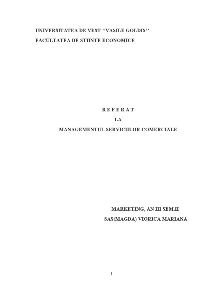 - capacitatea neutilizata a serviciilor este pierduta, serviciile neutilizate neputnd fi stocate n vederea unei valorificari ulterioare; - schimbul sau nlocuirea serviciilor neconforme sunt practic imposibil de realizat; - serviciul efectuat pentru un cumparator nu poate fi returnat. Aceste aspecte subliniaza existenta riscurilor asociate diverselor servicii comerciale, necesitatea unui efort suplimentar din partea producatorilor de servicii, precum si existenta unui sistem de informare bilateral vnzator-cumparator n vederea receptarii nevoilor clientilor. 2. Utilizatorul serviciului participa la realizarea acestuia, realizndu-se urmatoarele conditii: - existenta unui contact direct ntre vnzator si cumparator prin intermediul cataloagelor de specialitate, a punctelor de vnzare sau a magazinului nsusi; - participarea efectiva a consumatorului la utilizarea serviciului, el fiind cel care defineste obiectul cererii, receptioneaza livrarea produsului si semnaleaza eventualele disfunctionalitati aparute Aceasta caracteristica prezinta o mare importanta pentru orice firma comerciala, referindu-se la flexibilitatea si adaptabilitatea cerintelor clientilor sai. Adaugam la aceasta si faptul ca, n general, calitatea serviciilor comerciale este apreciata n functie de comportamentul unui numar restrns de angajati. Spre exemplu, ntr-un supermarket, contactul dintre magazin si cumparator se realizeaza la nivelul casierului, iar daca acesta are un comportament necorespunzator, atunci si imaginea magazinului va fi puternic deteriorata. 3. Pretul serviciilor comerciale reprezinta un pret al cererii, orice client care utilizeaza un serviciu, foloseste diverse rationamente economice care optimizeaza raportul ntre beneficii obtinute si costul acestora. Acest proces este guvernat de o doza ridicata de subiectivism, deoarece nu exista criterii obiective care sa poata ierarhiza alternativele de asigurare a utilitatii consumatorului. Cu toate acestea, consumatorul dispune de unele criterii si puncte de reper pentru a-si determina scara valorica a utilitatii personale si a o compara cu scara preturilor ofertantilor, printre care amintim: - timpul de munca; - dificultatea de realizare a serviciilor; - gradul de specializare; - rezultatele comparatiilor cu oferta concurentei, etc. Consecintele caracteristicilor serviciilor pentru consumator si pentru comert sunt prezentate n tabelul 1.1: