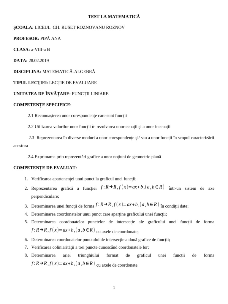 UNITATEA DE ÎNVĂȚARE: FUNCȚII LINIARE