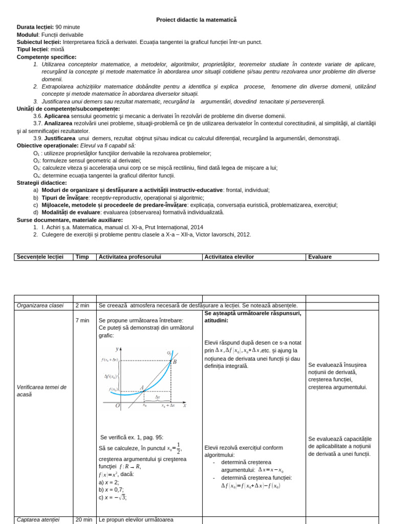 funcției f în punctul x 0 (m= f ' ( x0 )). Elevii fac concluzia că: de deducere a unei ecuații