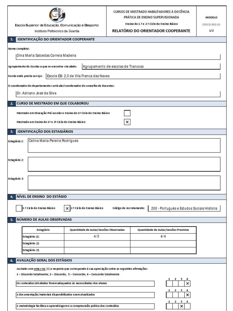 CURSOSDEMESTRADOHABILITADORESDOCNCIA PRTICADEENSINOSUPERVISIONADA Escola Superior de Educao, Comunicao e Desporto Instituto Politcnico da Guarda