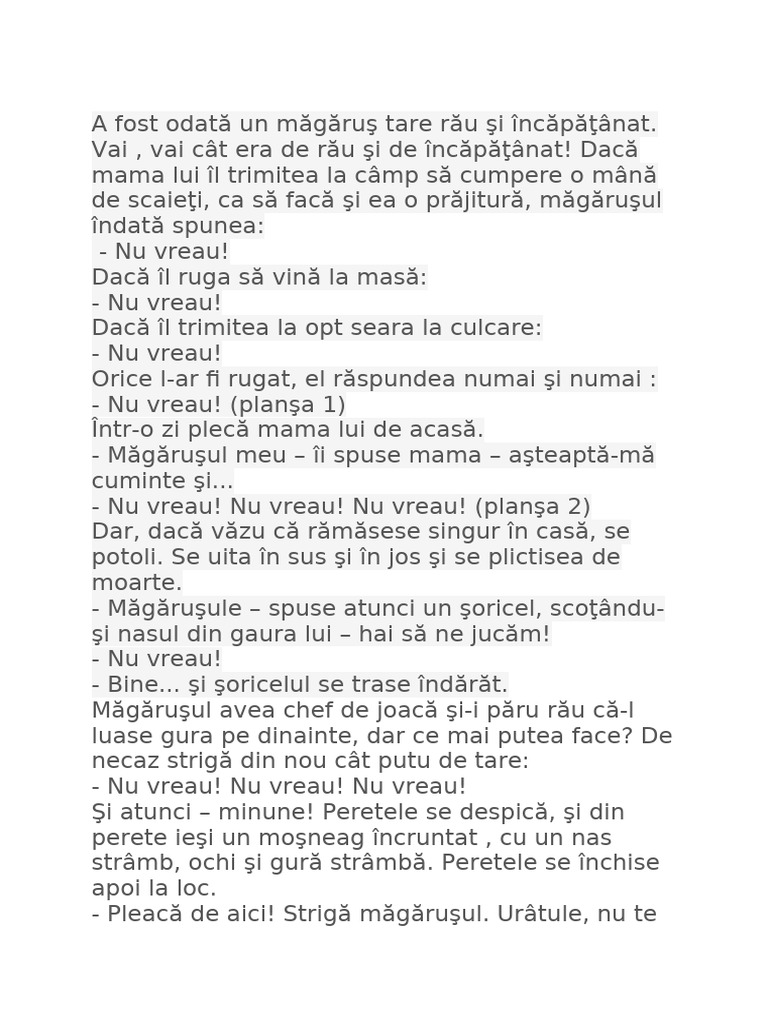 - Nu vreau! Strigă însă şi patul, aşa că măgăruşul