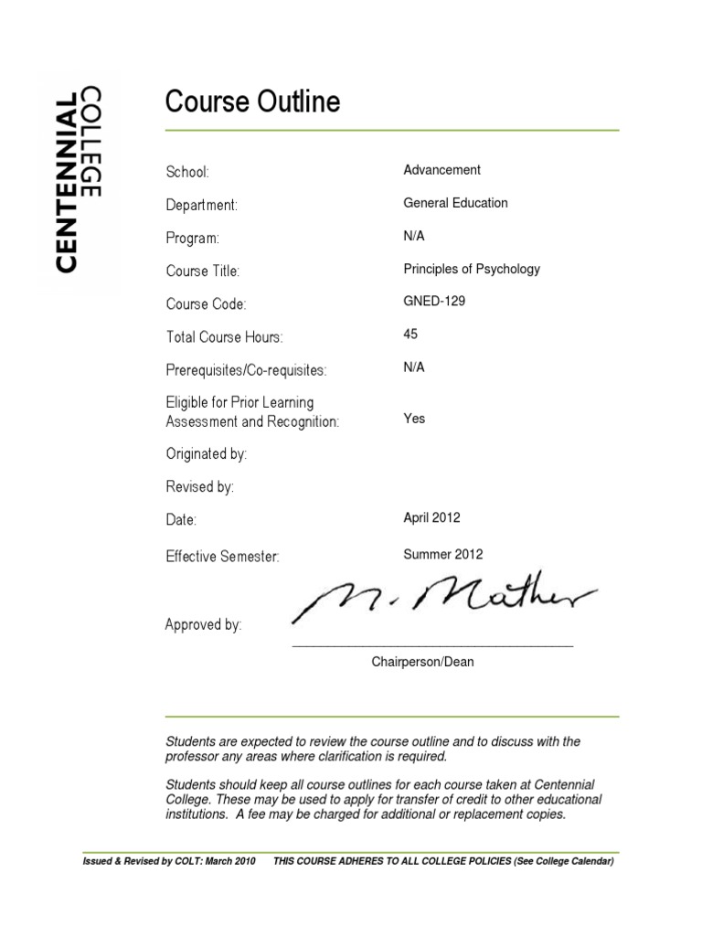 Students should keep all course outlines for each course taken at Centennial College. These may be used to apply for transfer of credit to other educational institutions. A fee may be charged for additional or replacement copies.